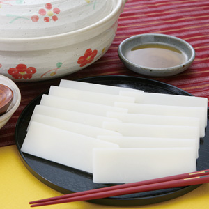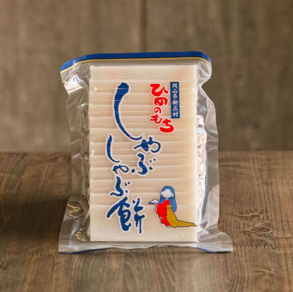 新庄村杵つきしゃぶしゃぶ餅は、鍋料理はもちろん、お雑煮やうどんにも合う手軽なお餅です。